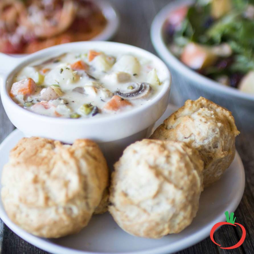 - Add water, milk, whipping cream, red potatoes, mushrooms, pearl onions (unless you used chopped onions), peas, corn, chicken bouillon, thyme, kosher salt, white pepper, black pepper, and cooked chicken pieces. Stir to thoroughly combine. Bring to 190 degrees F and simmer for 20 minutes or until potatoes are tender. Stir frequently.