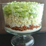 The night before serving, layer lettuce, onion, bacon, and cauliflower into a bowl with tight-fitting cover.